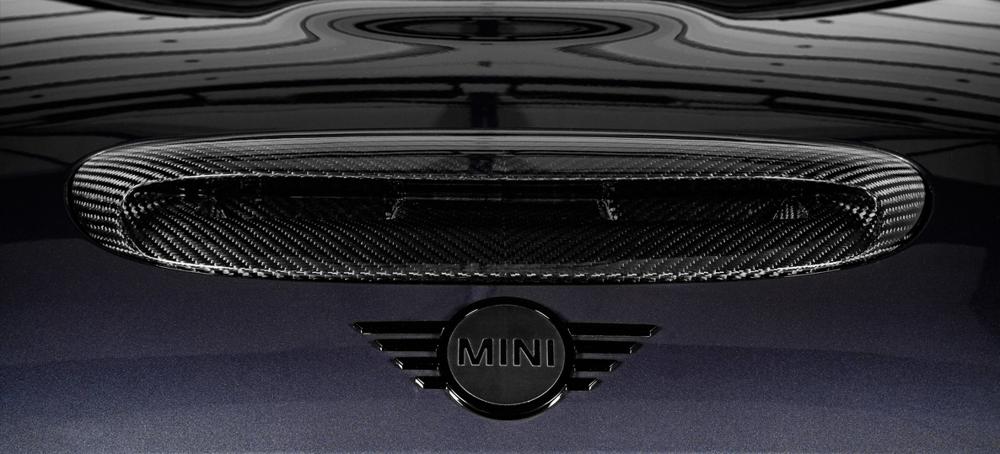 The OEM intake system draws in air from behind the front grill, above the radiator. The openings for the intake of ambient air are relatively small and therefore can lead to heat soak of the intake especially on a tuned Mini. The OEM bonnet scoop does not provide air directly to the intake and since the bonnet already has 2 cut-outs under the scoop, we decided to utilise this feature and redevelop the scoop. Our scoop is a direct replacement of the OEM part and clicks into place using the same fastening method. It features 2 inlet ramps which guide external air through the existing cut-outs on the bonnet and into the inlet duct (see below). As the car speeds up, more air is forced into the duct keeping inlet temperatures to a minimum and avoiding the heat soak issue. The scoop has a redesigned profile with a longer top surface to cover the openings which also provides a more aggressive look. Crafted from 100% prepreg carbon fibre, the scoop provides an incredible aesthetic to the vehicle. To further enhance the aesthetic feature - we used a V-shaped split weave with the carbon to give a symmetrical profile which works well as the scoop sits in the middle of the bonnet.