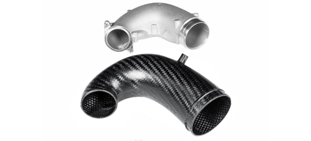 2) FLOW QUALITY : Having just a large internal volume is no good unless the flow path also allows for smooth airflow to the turbo. By using high temperature Prepreg Carbon Fiber we have managed to achieve a smooth internal surface. In contrast, the stock and other aftermarket elbows are all made from cast aluminium which end up with a rough internal surface. This coupled with the smooth curvature of the elbow results in a flow path which minimises turbulence.
