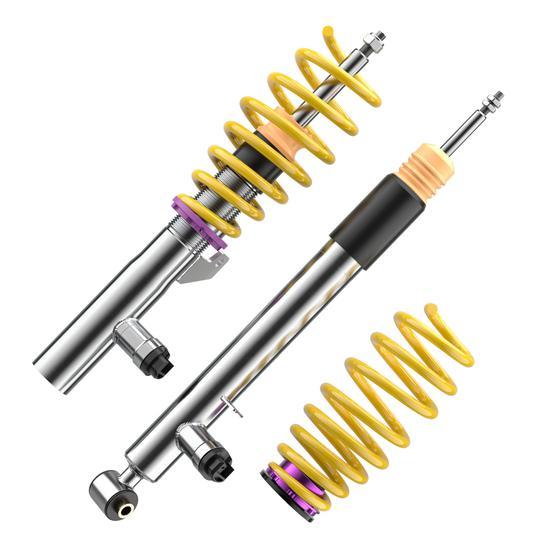 Our suspension technology is compatible with the electronics of various automobile manufacturers. The adaptive KW DDC Plug & Play coilover kit is recognized by the factory onboard electronics. All displays and control elements of your vehicle remain fully functional with the advantages of adaptive damping. The stainless steel construction provides additional protection and durability against the elements, salt and dirt. Height adjustability is retained from our unique use of materials for construction.