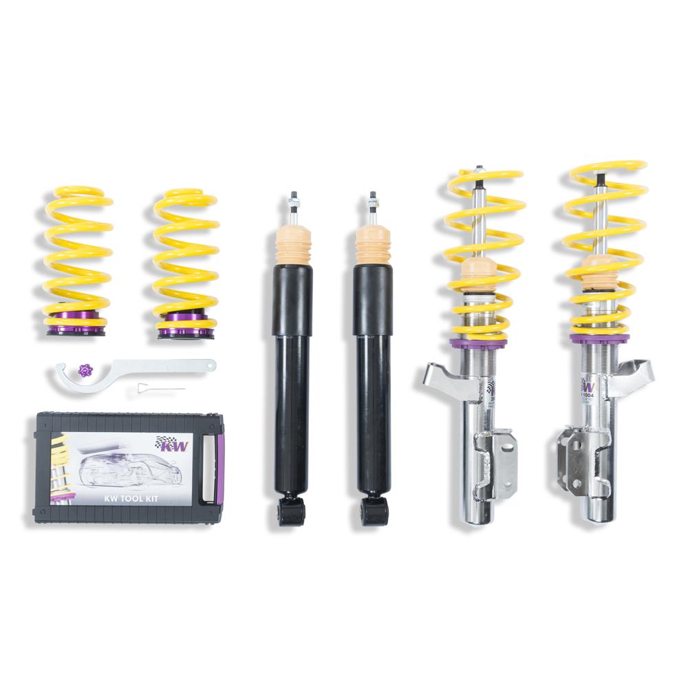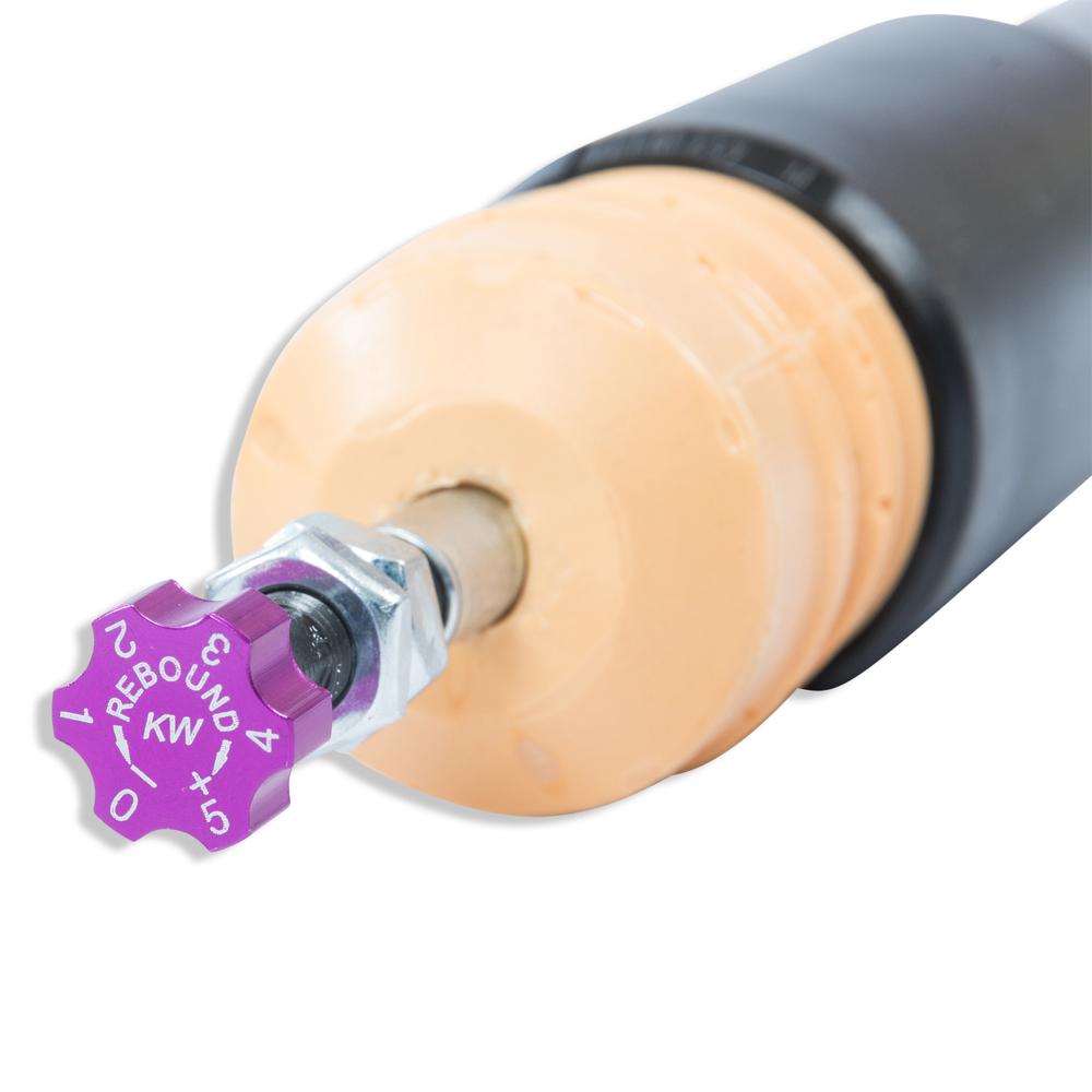 You have 16 clicks of adjustments with a KW V2. The rebound adjustment changes the driving dynamics if the change the complete wheel set or install a set of winter tires. You can adjust the damping characteristics of the weather-resistant KW V2 to be firmer or more comfortable, according to your own needs. The suspension is suitable for all competitive drivers who want more than just continous lowering for their driving pleasure.