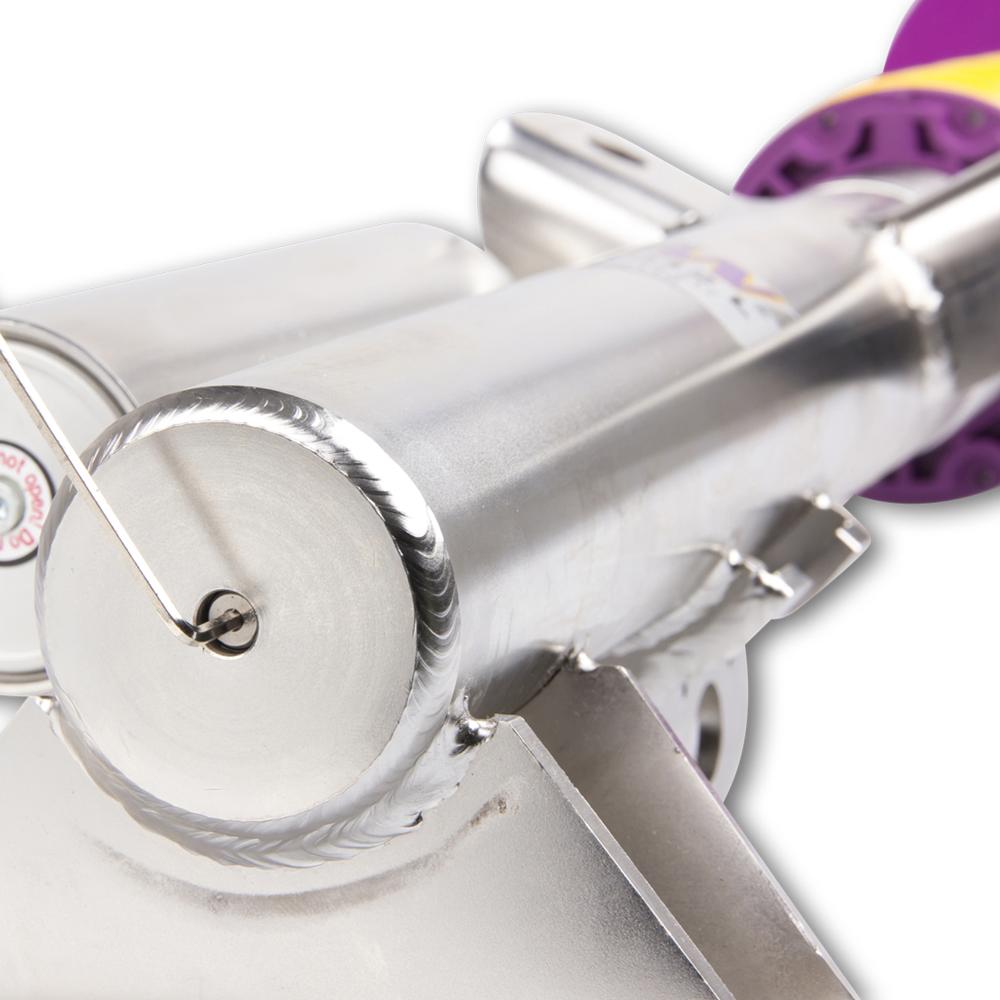 The rebound adjuster knob provides 16 precise clicks to personally dial in your desired vehicle setup. Thus allowing you the possibility to influence wheel/tire loads or take into concern chassis characteristics. Independent from rebound adjustment is the compression dampening, 12 precise adjustment clicks are provided to adjust the low-speed dampening. Most notably used to dial in wheel/tire setup.