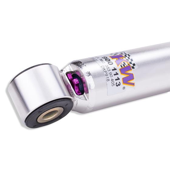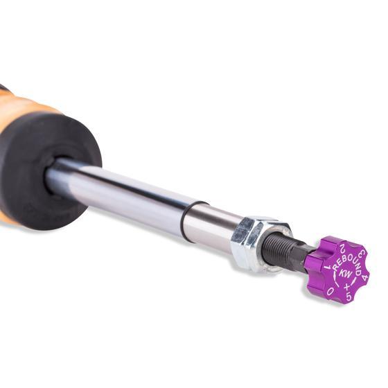 With the individually adjustable rebound setup of the KW V3 you can directly influence the handling and comfort with its precise click adjustment. Depending on the vehicle type, the rebound valves of the KW twin-tube dampers on the upper end of the piston rod will be adjusted via an integrated adjustment wheel or a twist-adjustment wheel which is included in the delivery content.