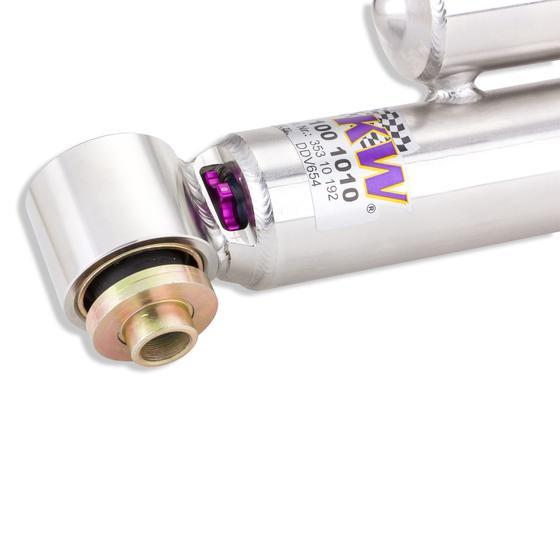 Our engineers have developed a sporty yet harmonious basic setup, as with any KW coilover kit. To be able to guarantee the perfect suspension setup we test on our KW 7-post rig, as well as extensive driving tests on country roads, motorways and even on the Nürburgring Nordschleife. For years, the KW V3 coilover is one of the top aftermarket products and is a benchmark for coilovers. It convinces sports car drivers, tuner, large-and small series manufacturer such as Alpina, MTM, Manthey, Oettinger and many more leading companies in the international automotive industry with its damping characteristics, quality finish and durability.