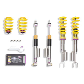 The KW V3 coilover kit is the perfect accessory for performance-oriented drivers and tuning enthusiasts who put a great demand on their suspension. The separately rebound and compression damping adjustable dampers with their "well-thought-through" click adjustment allow a perfect setup. So it is easy to influence the steering behaviour, directional stability, tire grip and handling characteristics when driving on the limit.
