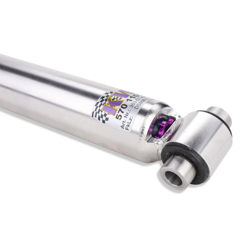 With the individually adjustable rebound setup of the KW V3 you can directly influence the handling and comfort with its precise click adjustment. Depending on the vehicle type, the rebound valves of the KW twin-tube dampers on the upper end of the piston rod will be adjusted via an integrated adjustment wheel or a twist-adjustment wheel which is included in the delivery content.