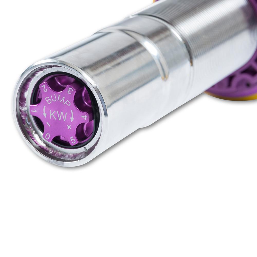 If you have already made your first performance modifications to your vehicle our KW V3 coilover will compliment your upgrades. The patented KW-valve technology for separate adjustment of rebound and compression damping allows you to individually setup your suspension.The adjustable KW bottom valve adjusts the low-speed range of the compression level in twelve clicks.