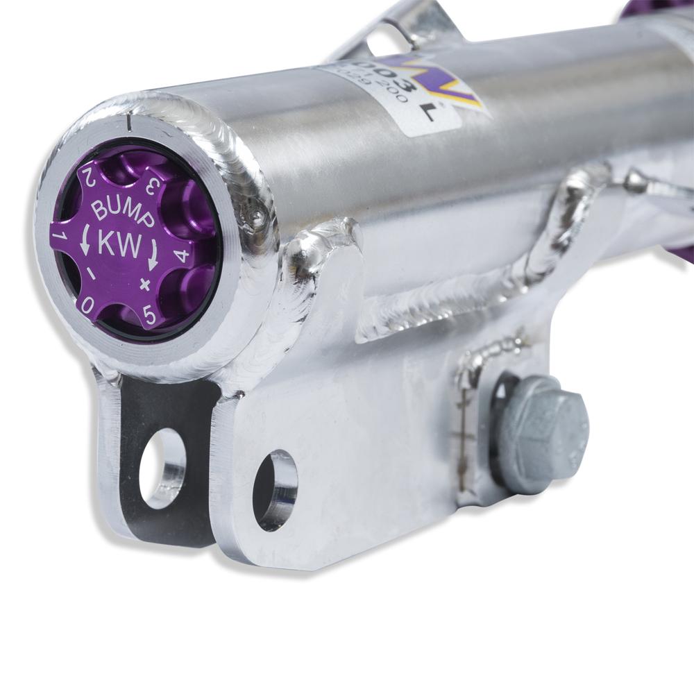 If you have already made your first performance modifications to your vehicle our KW V3 coilover will compliment your upgrades. The patented KW-valve technology for separate adjustment of rebound and compression damping allows you to individually setup your suspension.The adjustable KW bottom valve adjusts the low-speed range of the compression level in twelve clicks.