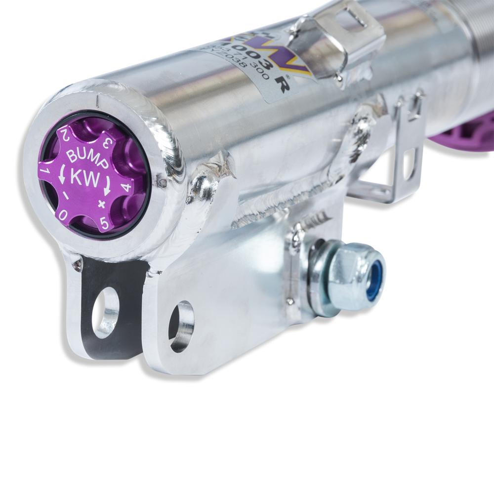If you have already made your first performance modifications to your vehicle our KW V3 coilover will compliment your upgrades. The patented KW-valve technology for separate adjustment of rebound and compression damping allows you to individually setup your suspension.The adjustable KW bottom valve adjusts the low-speed range of the compression level in twelve clicks.