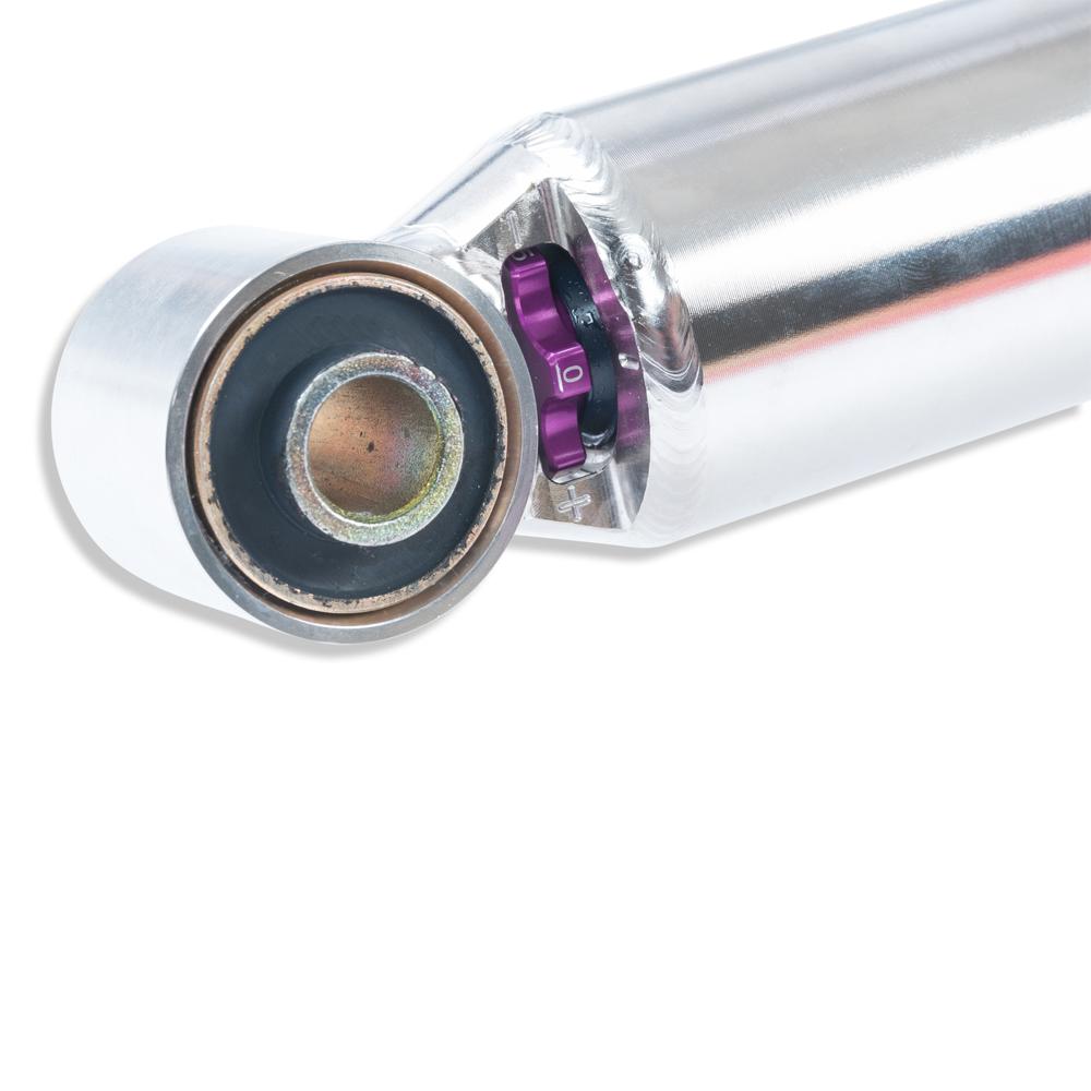 You don’t need any adjusting tools because of the patented compression adjuster at the lower end of the stainless steel housing. The adjustable compression damping with its twelve exact clicks allows you to manually influence body roll, without having to change the spring rate which optimally matches the rebound.