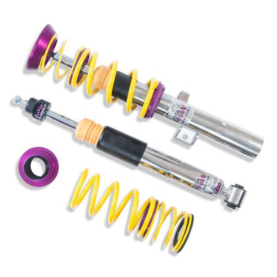 If you have already made your first performance modifications to your vehicle our KW V3 coilover will compliment your upgrades. The patented KW-valve technology for separate adjustment of rebound and compression damping allows you to individually setup your suspension.The adjustable KW bottom valve adjusts the low-speed range of the compression level in twelve clicks.
