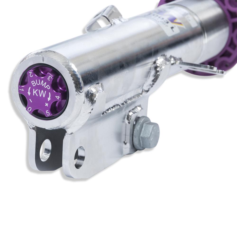If you have already made your first performance modifications to your vehicle our KW V3 coilover will compliment your upgrades. The patented KW-valve technology for separate adjustment of rebound and compression damping allows you to individually setup your suspension.The adjustable KW bottom valve adjusts the low-speed range of the compression level in twelve clicks.