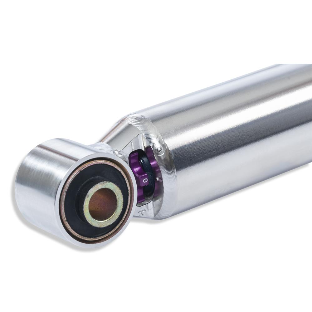 You don’t need any adjusting tools because of the patented compression adjuster at the lower end of the stainless steel housing. The adjustable compression damping with its twelve exact clicks allows you to manually influence body roll, without having to change the spring rate which optimally matches the rebound.