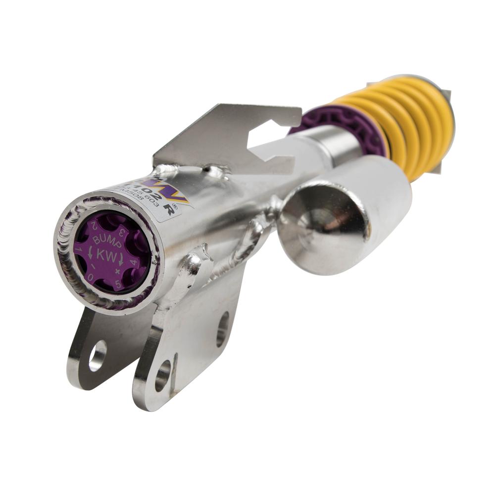 If you have already made your first performance modifications to your vehicle our KW V3 coilover will compliment your upgrades. The patented KW-valve technology for separate adjustment of rebound and compression damping allows you to individually setup your suspension.The adjustable KW bottom valve adjusts the low-speed range of the compression level in twelve clicks.