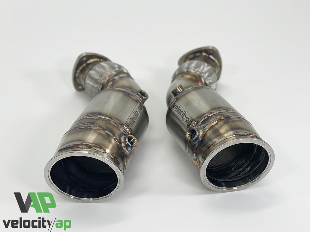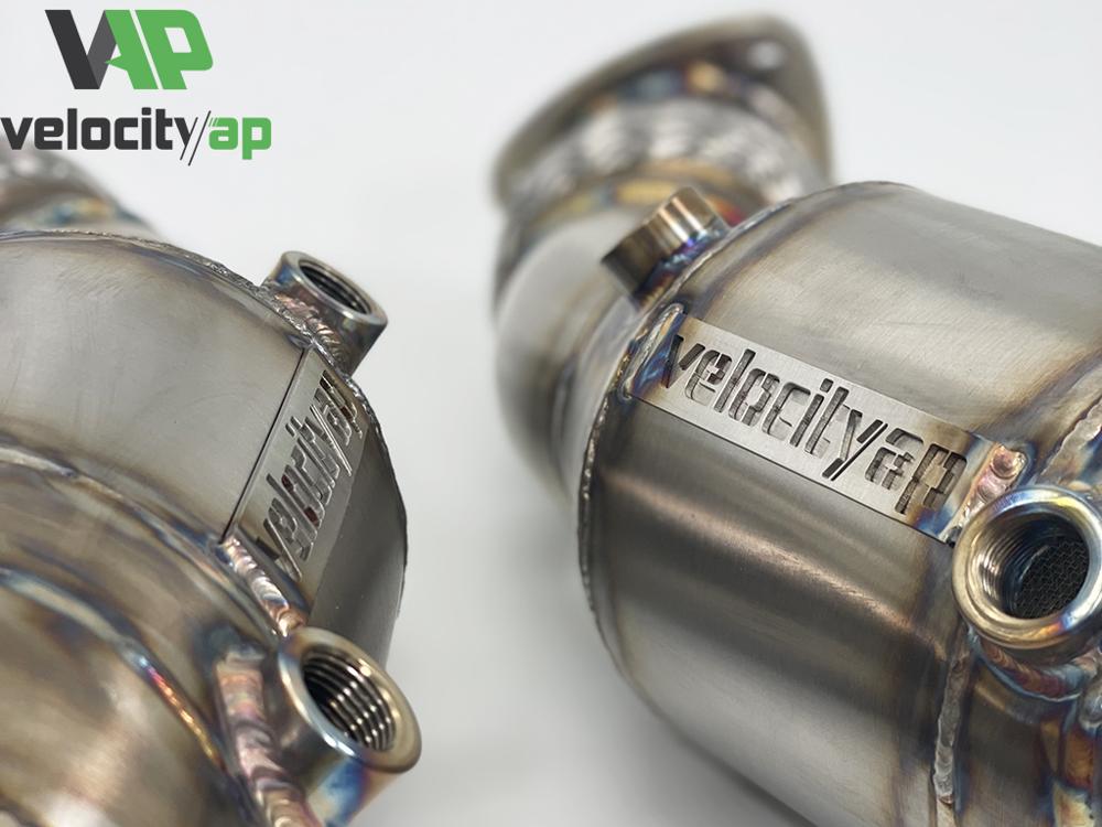 The answer for increasing the sound level is downpipes. Our 200 Cell Units replace the 600 cell primary and 400 cell secondary catalysts, with a single 200 Cell Ultra High temperature 5″/125mm brick. The same one we use in our McLaren applications.