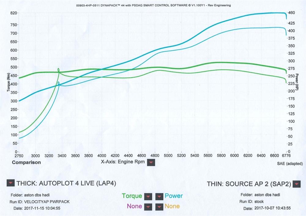 HP and torque have been improved across the RPM range, leading our test driver (who has plenty of single seater race time under his belt) to say “Definitely need the Traction Control ON!” This DB9, with nearly as much HP as a DBS and an additional 64.75ft/lbs of torque, is now much quicker than a DBS under real world driving conditions.
