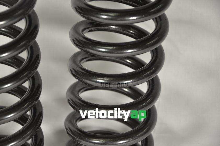 VelocityAP springs use exclusively high quality, high stress X5K Spring Steel Although considerably more expensive than regular steel, this new generation steel allows us to further improve upon th original Aston Martin spring design by reducing the amount of steel required in a spring. VelocityAP springs are therefore substantially lighter (by approximately 30%) and reduce the solid height therefore increasing travel. X5K Spring Steel is used in almost all top levels of Motorsport, giving a hugely successful endorsement of its characteristics & proven durability.