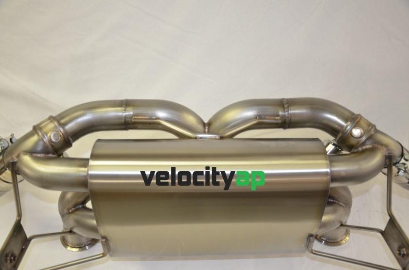 The Lamborghini Huracan LP610 is a fantastically capably exotic, but the V10 needs to sing!!! Velocity Automotive Performance hand-builds this exhaust in Canada, with a combination of our 'Race' and 'Sport' sound levels. Race + Touring is also available upon request for an even quieter valve-closed operation. Specially designed with a flow-merging rear muffler, this system provides a broad spectrum of sound - from a thick, beefy rumble through to a spine tingling high-pitched howl with valves open, but a quiet, smooth and understated sound when in the closed position.