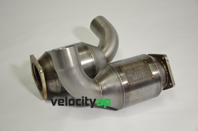 Handmade in Canada for your Porsche 991 Turbo. VelocityAP's bolt-on 200 Cell Sport Catalysts provide an instant boost in HP, Torque and Throttle response. A fast and simple improvement upon the factory sound, with no permanent modifications required. Pairs to OEM Muffler, or with any of our sport/muffler delete option.