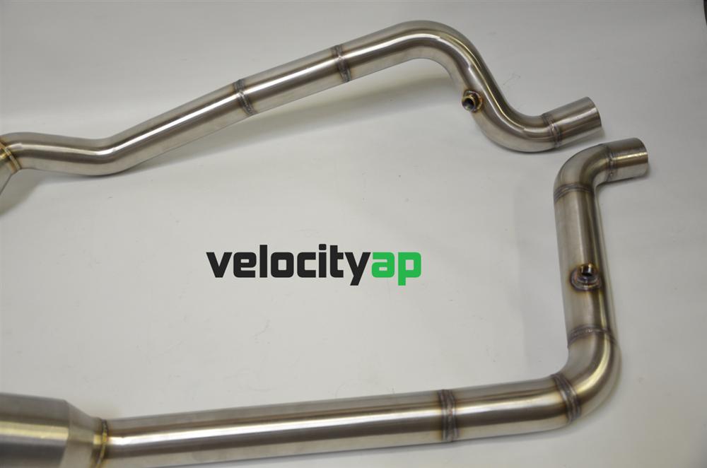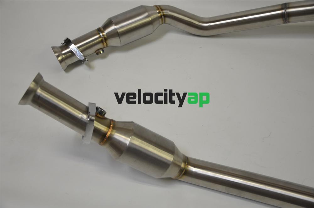 High flow Motorsport-grade Sport Catalysts & Downpipes. In addition to giving the exhaust note an aggressive edge, these catalysts replace the cumbersome OEM catalyst units which contain a 600 cell secondary ceramic catalyst, with a free flowing 304 grade downpipe and sport Cat. None of the resonance issues associated with gutting the OEM catalysts.