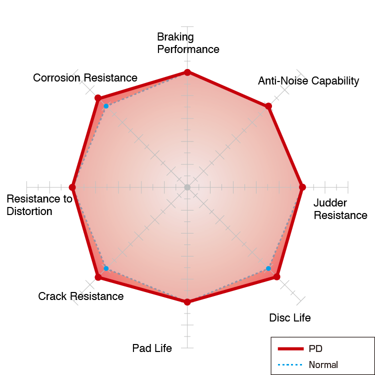 • Improvements in durability, crack resistance and heat resistance were achieved by mixing a formulation of additives in the disc material.