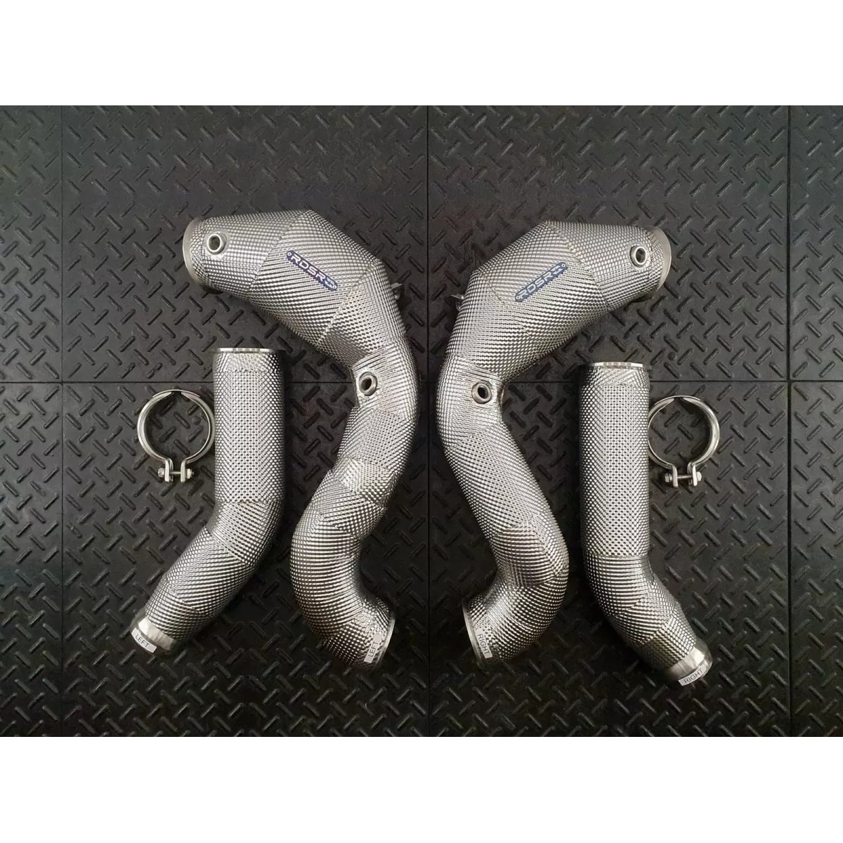 Engineered for durability and precise fitment, each assembly is manufactured from 2 mm wall 304L stainless steel, 100% TIG welded and back purged, and finished with OEM-spec flanges for a true bolt-on installation. Tailor the system to your goals with high-flow catalyst options including HJS 200 cpsi or GESI GEN2 400 cpsi. With Redstar’s focus on quality, sound, and seamless integration, these downpipes deliver a compelling performance exhaust solution for your Mercedes-AMG C63 and C63S.