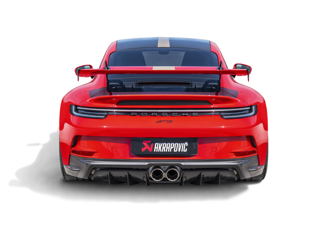 Tuned quarter-length resonators in addition to the catalytic converters ensure the sound quality and the absence of any distortion or unwanted frequencies, creating a unique sound experience. The combination of an Akrapovic Slip-On Race Line (Titanium) and Evolution Header Set (Titanium), developed for use on closed-course competition circuits only, provides increases of 16.6 kW (22.6 hp) in power at 4,550 rpm and 35.2 Nm in torque at 4,500 rpm, when tested on the Akrapovic dyno against a Porsche 911 GT3 (992) with a standard stock exhaust.