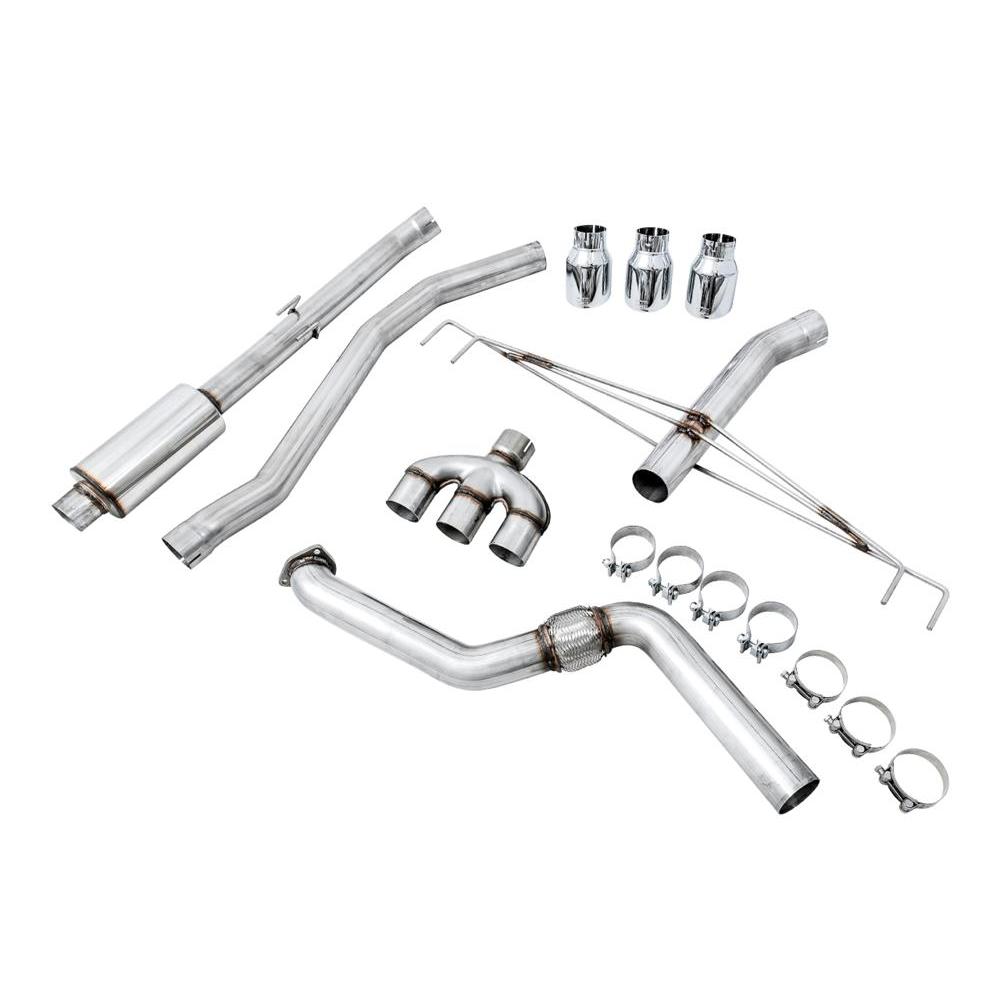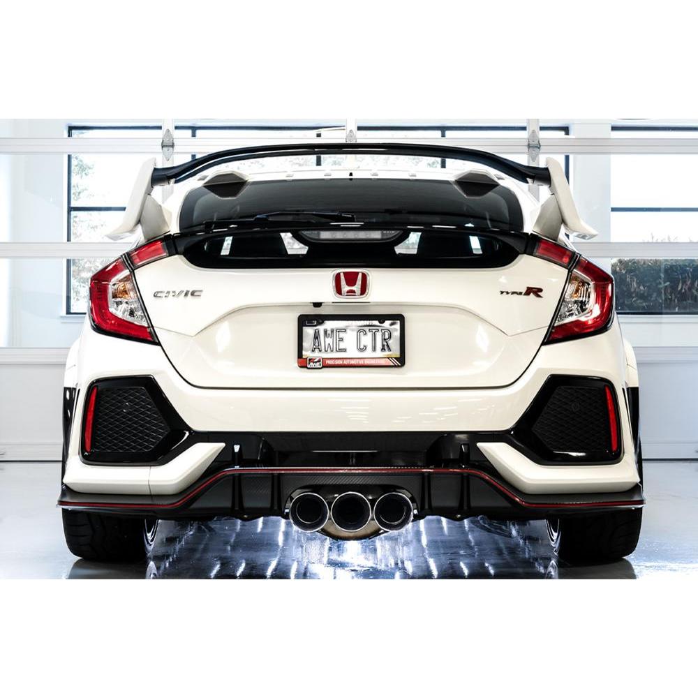 For those who like it raw and rowdy, the Track Edition is for you. The Track Edition shares the same integrated front pipe, bespoke mid pipe resonator, and precision engineering as its Touring Edition counterpart, minus AWE’s patented drone-canceling solution, 180 Technology®. In place of the 180 Technology® resonator in the rear lies a Track Edition straight section. As a result, this version is known to get (really) rowdy in mid-range acceleration and deceleration, and may be too much for many. And you can't return it if its too loud (but you can convert it to a Touring Edition). You've been warned. Running the Track Edition and think it's too loud? AWE made it easy to switch to a Touring Edition with the engineered Conversion Kit to tone it down. You're never stuck if you decide at a later date to change your volume. Important notes: The exhausts includes a 3” front pipe. This front pipe is integrated into the design of the exhausts. AWE exhausts are not designed to mate with other aftermarket front pipes. Downpipes, on the other hand, should work just fine (so long as they work with the factory-style flange). We decided to reuse the factory-style flange and gasket for reliability and long-term performance. The factory's double-layer steel gasket design is vastly superior to any aftermarket flat gasket. This design allows for the gasket to be fully captured by the machined groove in the flange, eliminating any possibility of blowout or deterioration over long-term use. Additionally, it is fully serviceable, unlike a flat gasket that can stick to the mating flanges and tear upon removal. Each CTR exhaust comes complete with 4.5” double-walled, slash-cut tips available in Chrome Silver or Diamond Black, and feature a stamped AWE logo. All tips are individually adjustable, allowing depth into the bumper to be set according to personal taste.VTEC. Turbo. AWE. Presenting the AWE Track Edition Exhaust for the Honda FK8 Civic Type R.