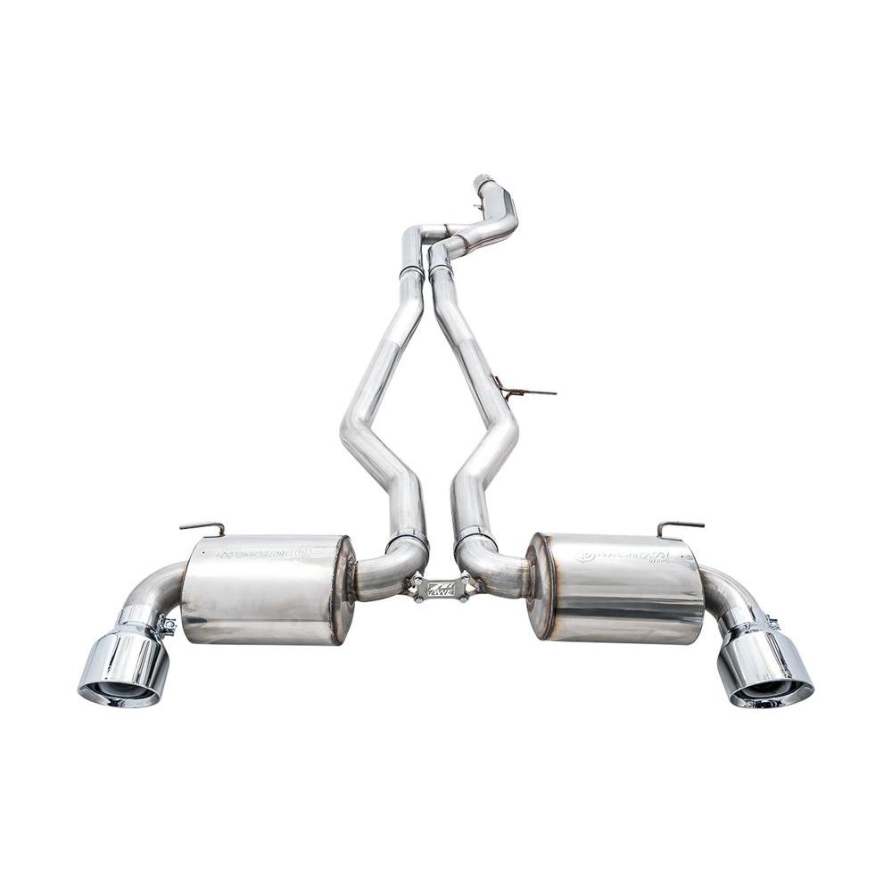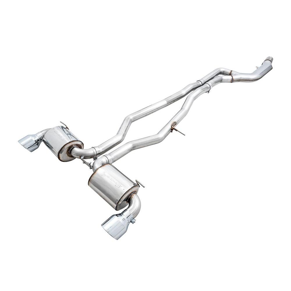 A dual 3” T304L stainless steel downpipe-back configuration, the AWE Touring Edition Exhaust is the perfect dose of steel for drivers looking for straight-pipe performance while not sacrificing daily drivability: a deep, sophisticated exhaust note with zero drone at highway speeds. Featuring a stamped stainless steel merge upstream equivalent to dual 3” tubing coming right off of the downpipe. Translation: an impressive 65% increase in flow over stock that future proofs for downpipes of various sizes. Beyond the unique merge, the exhaust splits into dual 3” piping to allow optimal flow throughout the entire exhaust route. Bringing up the rear, the Touring Edition features AWE’s patented drone-canceling solution, 180 Technology®, which targets and omits drone-prone frequencies. What’s this mean for you? You’ll be tuned into a pure, full-bodied B58 soundtrack unlike any other. Equipping a downpipe? Read this (seriously): If you're equipping an aftermarket downpipe with an outlet larger than 80mm, we've made it easy for you. Removal of the included inlet adapter will be required, which will then leave you with the 3.5" diameter inlet of the stamped stainless steel merge. A simple custom adapter will be required to bridge the gap between your aftermarket downpipe and the 3.5" diameter inlet of stamped stainless steel merge. We've future-proofed your exhaust for big power with no less than 3.5" of high-flow fury. The Touring Edition Exhaust is available as non-resonated or resonated. We recommend the non-resonated variant for vehicles equipped with the stock downpipe. If your Supra is equipped with an aftermarket downpipe, we recommend going resonated. Have the stock downpipe but planning to go aftermarket later? No worries, you can swap in the resonated mid sections with ease via an AWE Resonator Conversion Kit. Comes complete with 5”, double-walled, slash-cut tips in either chrome silver or diamond black, with a stamped AWE logo.