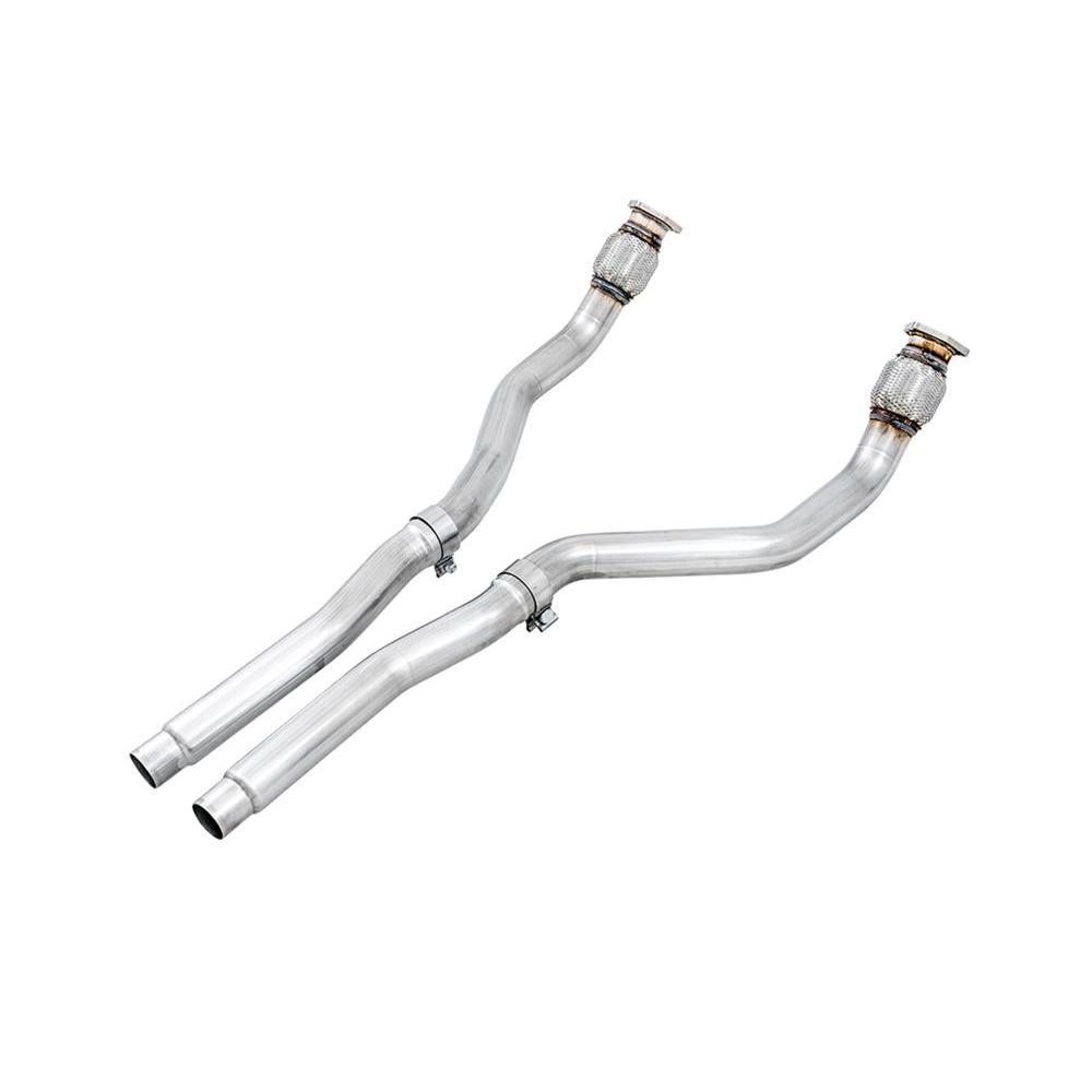 Add AWE's Non-Resonated Downpipes to an existing AWE Track Edition Exhaust to make the AWE Track Extreme Exhaust. AWE Non-Resonated Downpipes are constructed from 2.5” T304L stainless steel and remove an additional resonator to produce a louder and deeper tone to the exhaust note.