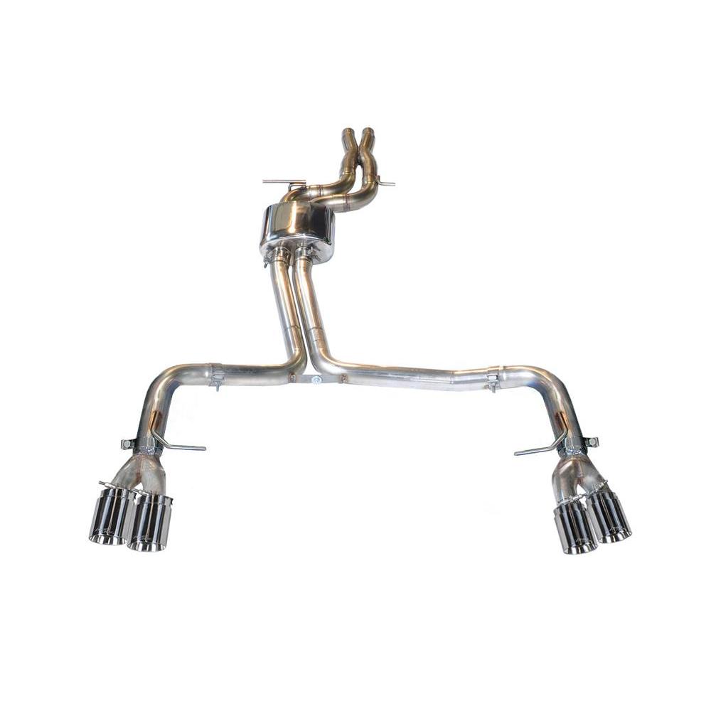 The lower priced sibling of our renowned Touring Edition Exhaust, the Track Edition for the B8 S5 3.0T is made of the same quality T304L stainless, is crafted in house, and delivers the same power gains. The difference comes in the removal of AWE’s sound-cancelling 180 Technology™ rear-mufflers, which can be found on our Touring Edition Exhaust. Warning - this thing gets rowdy! This system will produce a louder tone in the mid range. S-Tronic owners beware: This system will be especially loud at part throttle. Given the removal of the rear-mufflers, this system cannot be returned due to sound.As far as downpipes (sold separately), AWE offers Resonated and Non-Resonated Downpipes. The AWE Resonated Downpipes feature resonators larger than the stock units in order to produce a more mellow sound volume, and AWE's Non-Resonated Downpipes are suited for owners seeking the loudest AWE has to offer have to offer in the S4 line up. Both our Resonated and Non-Resonated Downpipes feature larger than stock tubing diameter. Note: In limited cases, the factory downpipes have been known to emit minor rattling noises when paired with the AWE S4 exhaust system. The possibility of rattling is eliminated with the addition of AWE downpipes.Hand-crafted, every detail of these exhausts was labored over to ensure maximum performance and longevity - what you'd expect from AWE.