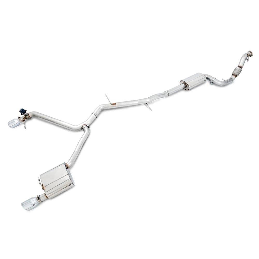 Valve closed for sophistication; valve open for aggression. All at the touch of the SwitchPath™ Remote button. Tone at your fingertips. Equipped with a 3” resonated downpipe, a 3” valved straight section on the driver’s side and 2.5” piping with a muffler on the opposing passenger’s side, the AWE SwitchPath™ Exhaust is capable of changing soundtracks instantly with the touch of the SwitchPath™ Remote button at any time. Drone-free mood control accompanied by addicting, crackling gear shifts and impressive performance. Constant, all-around satisfaction. Note: you may notice a slight valve rattle upon cold start as you would with many factory valved systems. This sound will go away within a few minutes, and you will be off to the races in no time. Tips are are 102mm, slash-cut, include the AWE logo, and are double walled to ensure a mirror finish even under hard usage. All tips are individually adjustable, allowing depth into the bumper to be set according to personal taste.