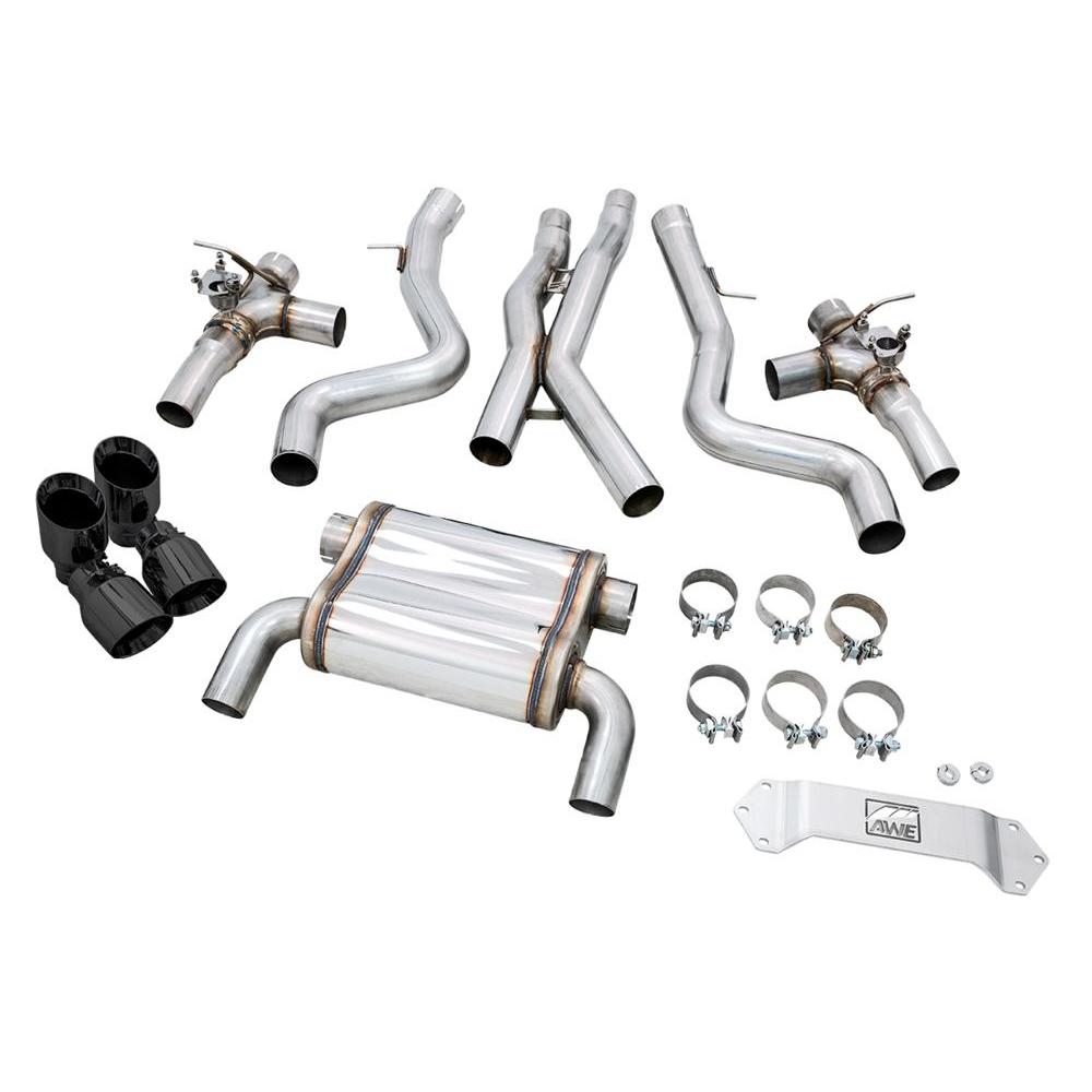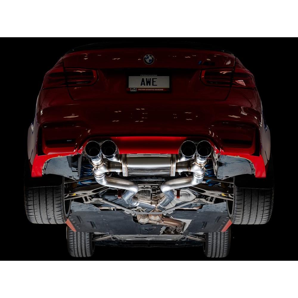 Unified design for OPF euro and non-euro spec cars, 50-state legal Cat Back design, precision-engineered X-pipe to unlock a clean S55 tone, retained M-Sport button functionality, 3” CNC mandrel-bent configuration, max gains of 12 hp and 16 lb-ft of torque at the wheels and signature AWE 102mm double-walled, slash-cut tips in Chrome Silver or Diamond Black. Throw in a No Check Engine Light Guarantee, Perfect Fitment Guarantee and Lifetime Warranty and you've got the only real option for your S55. Minimal bends, maximum flow, and push-button attitude. The SwitchPath™ Exhaust is a true Cat Back configuration comprised of 3-inch and 2.5-inch U.S.-sourced T304L stainless steel, a precision x-pipe, and a valved SwitchPath™ muffler tuned specifically for the S55. Beginning after the secondary catalysts, the precision X-pipe immediately helps smooth the S55 of its infamous rasp, allowing the tone to be further refined by the bespoke muffler in the rear. The closed valve experience: When the valves are closed, the SwitchPath™ Exhaust produces a refined, aggressive howl while remaining full-bodied and powerful – no congested, metallic sounds here when on the throttle. At cruising speeds, interior acoustics are close to stock. AWE SwitchPath™ tech also responds perfectly to the many transmission settings and shift points in DCT vehicles.