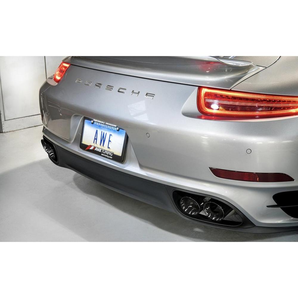 Behind the finished product are hundreds of hours of prototyping, engineering, research, testing and daily usage evaluation; outputting an exhaust system that is equal parts sophisticated and aggressive. Producing an exhaust system that is both aggressive at full throttle yet civil enough for bluetooth calls is no small endeavor. Using the AWE 200 Cell HJS HD High Flow Cat Sections, AWE sound engineers carefully studied the tones of the multiple prototype 991 TT systems at various RPMs, and meticulously engineered a bespoke 991 TT solution (as opposed to a repurposed 997.2TT system) to combat frequencies that are not appropriate for a supercar of this caliber – retaining and building upon only the perfect notes. All while producing an impressive 29+ horsepower at the crank along with the AWE No CEL Guarantee.Using 3.0" diameter T304 stainless steel tubing and an H-pipe design, the AWE muffler section routes exhaust gases through two proprietary and handcrafted mufflers to create the AWE signature sound. This system is available with either Diamond Black quad tips, Chrome Silver quad tips, or a system that retains the factory tips. This particular product is the Diamond Black tip version. This is the only Porsche 991.1 Turbo and Turbo S Exhaust System with enough craftsmanship to bear the AWE name. Please note that due to the use of high flow catalytic converters this exhaust is legal for racing use only.