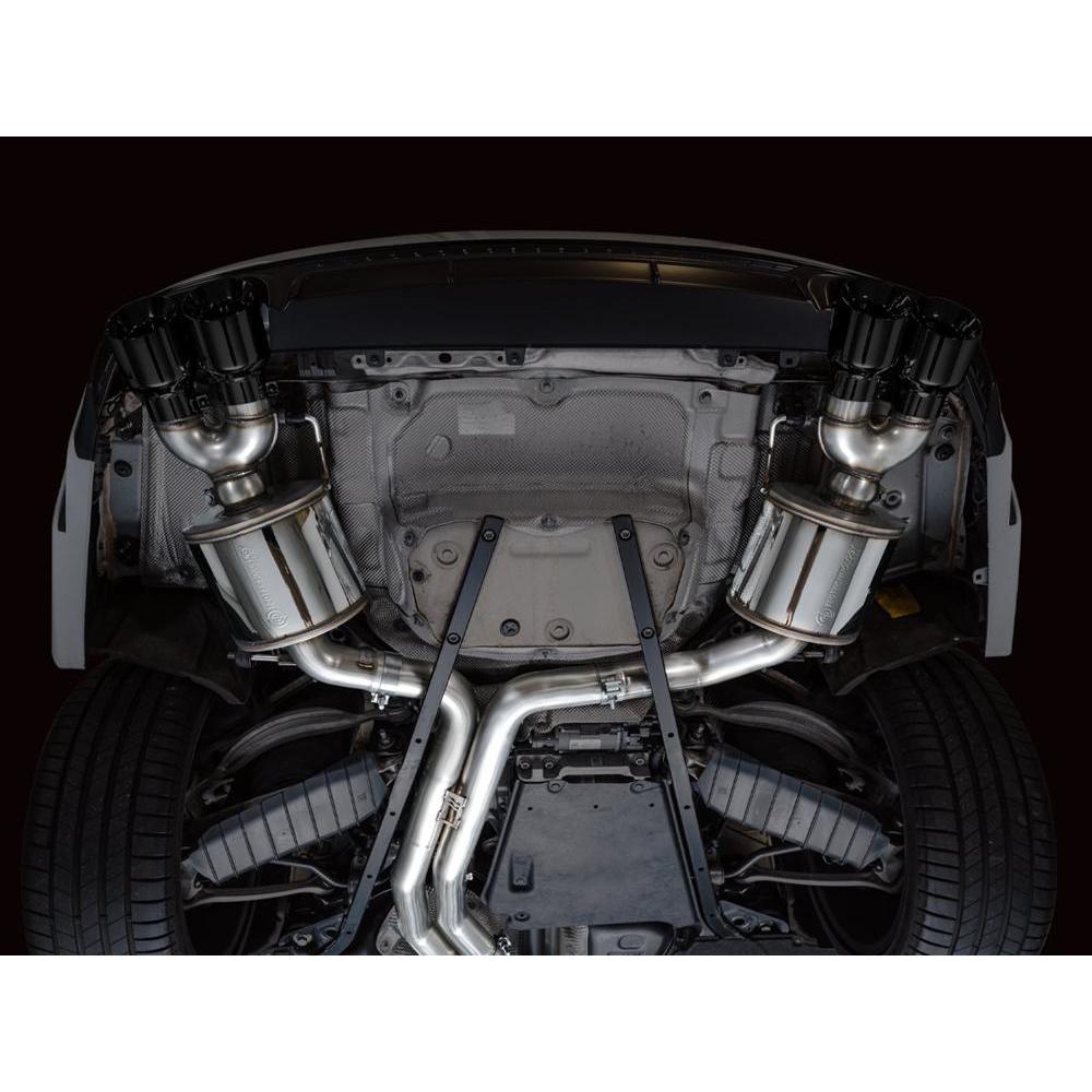 A true dual 3” T304L stainless steel configuration featuring a bespoke, straight-through center resonator specific for the 2.9TT, topped off with AWE’s proprietary drone-canceling solution, 180 Technology®, in the rear. The result is a menacing, aggressive soundtrack throughout the range with a drone-free cabin experience under cruising conditions. This exhaust resides at the intersection of exotic aggression and highway comfort for the S6/S7. Quad 4.5" double-walled, slash-cut tips in your choice of chrome silver or diamond black. AWE No CEL Guarantee, Perfect Fitment Guarantee, and Lifetime Warranty come standard.