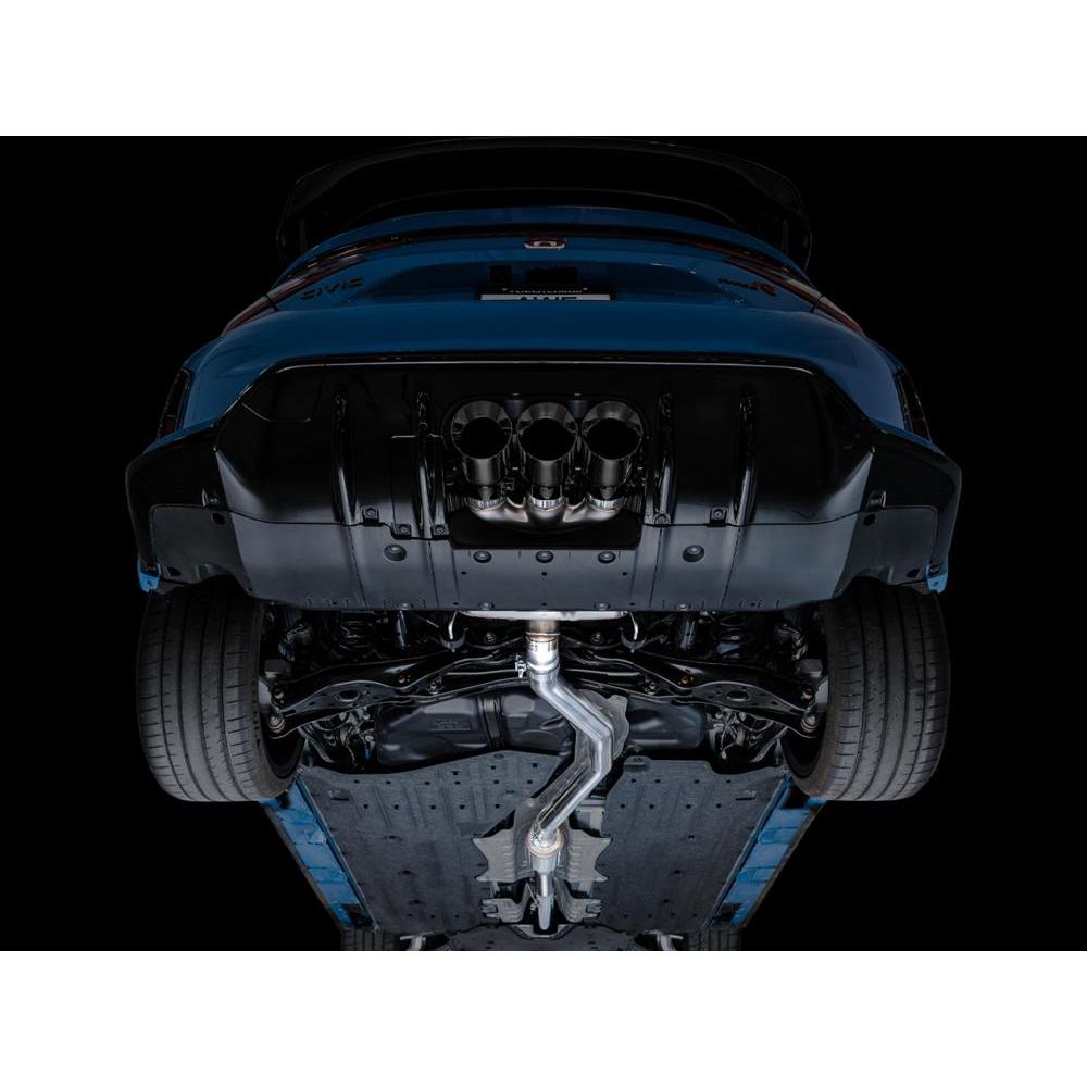 The Touring Edition include a full 3” frontpipe that is designed with a unique flange and gasket to ensure the full diameter from inlet to outlet. This frontpipe is integrated into the design of the exhausts. AWE exhausts are not designed to mate with other aftermarket frontpipes. At the intersection of sophistication and aggression lies the Touring Edition Exhaust. A 3” T304L stainless steel downpipe-back configuration, the Touring Edition Exhaust is the perfect dose of steel for drivers looking for straight-pipe performance, a deep, sophisticated exhaust note, and zero drone at highway speeds. Featuring an integrated front pipe, robust midpipe resonator, thick-walled T304L stainless steel, and an iteration of AWE’s 180 Technology® bespoke for the FL5 in the rear, the Touring Edition is the do-it-all configuration for everyday drivers. Thanks to AWE’s patented drone-canceling 180 Technology®, the Touring Edition keeps all of the commotion to the rear of the vehicle where it belongs, and destroys drone-prone frequencies that would otherwise resonate within the cabin at highways speeds – all packaged perfectly to fit within the undertray of the bumper with plenty of clearance. The Touring Edition, and the 180 Technology® within it, were both developed for use with and without an aftermarket catted downpipe. As exhaust gases exit the K20 engine and flow into an AWE 180 Technology equipped resonator, they pass through strategically located ports, and into reflection chambers. Sound waves, carried by these exhaust gasses, bounce off the walls of the reflection chambers. By controlling the size and location of the ports and the chambers, we also control when the sound waves exit the chambers. The specific timing of when the reflected sound waves rejoin the main exhaust flow creates a one-hundred-and-eighty-degree out-of-phase sound wave that cancels out problematic frequencies. All of this with a straight-through design- in other words, all the power, none of the drone.