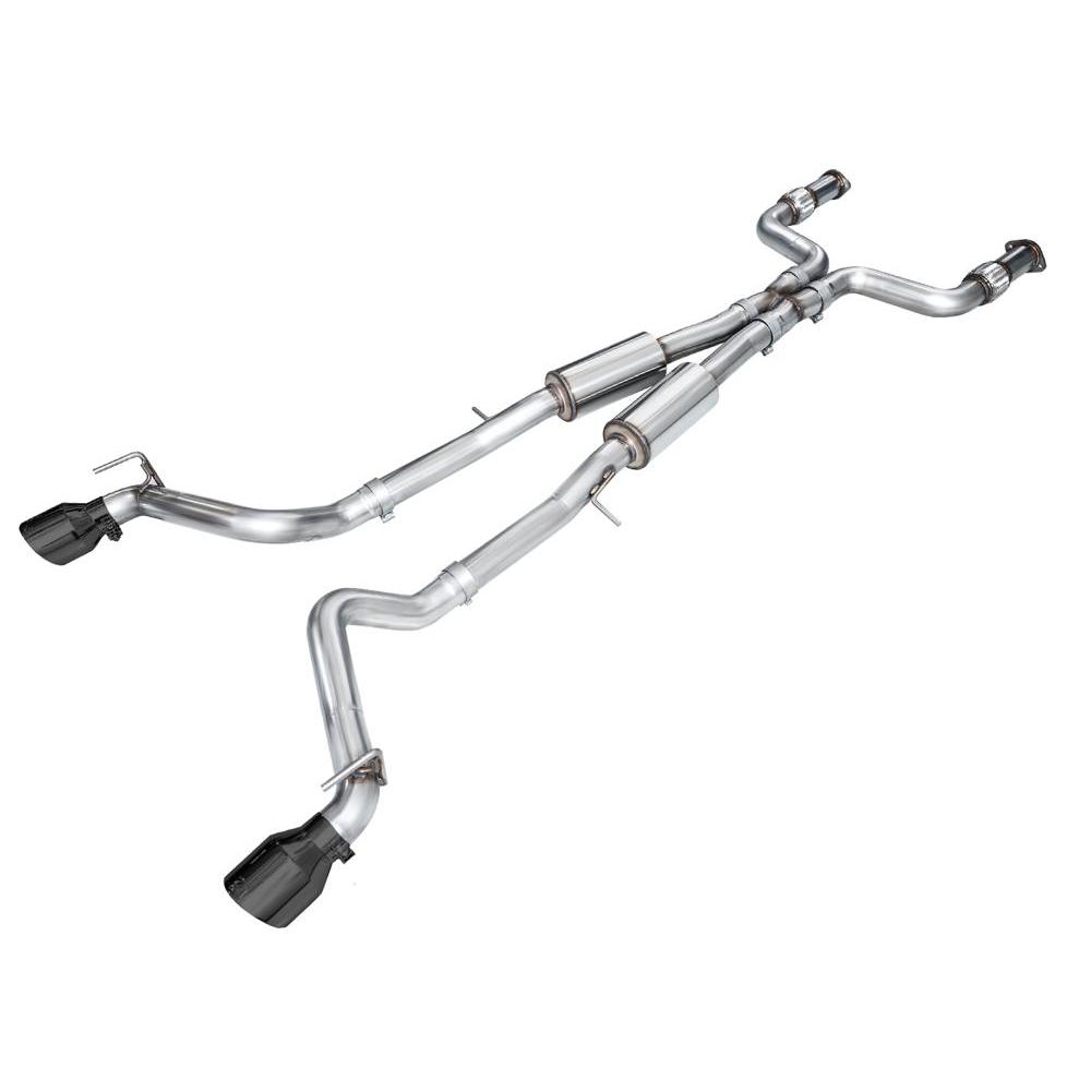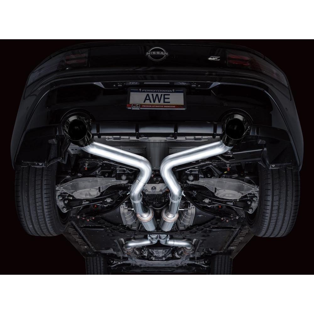 Dual full 3" catback configuration tailored for the 3.0TT Z. Featuring a symmetric X-pipe and robust resonators built for big boost. Dyno-proven power gains of +6 hp and +14 lb-ft of torque at the wheels (factory downpipes), and developed with and without aftermarket lower downpipes. The Track Edition does not feature AWE's pratented 180 Technology® resonators, the result is more pronounced volume within the cabin during mid-range acceleration/deceleration and cruising speeds, and may be too much for many–especially with aftermarket components upstream. Due to this reason, AWE Track Edition Exhausts cannot be returned based on sound preference. You’ve been warned. Comes complete with two 5" diamond black slash-cut tips, and all necessary hardware for installation. Each exhaust comes complete with bespoke adapter plates and gaskets to AWE’s dual 3” system to factory downpipes. If you’re mating to aftermarket components, this hardware is not needed.