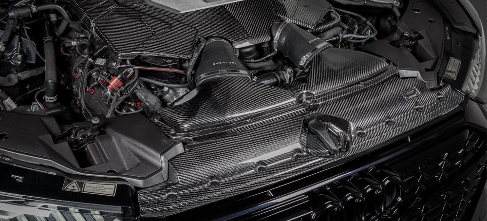 The Audi C8 RS6 intake system is the culmination of extensive development, testing and prototyping. Our aim was to address 2 main criteria: 1) Increased flow rate. 2) Smooth Airflow. The first objective was met by utilising all of the limited space available in the RS6 engine bay which was heavily restricted by the underside of the hood. Our solution was to completely redesign the entire airbox which maximised volume, increased flow entry openings and created a more favourable filter angle to the turbos. Furthermore we dramatically increased the size of the turbo inlets by as much as 85% when measuring the cross sectional area at the openings. The second objective was met by designing an organically shaped system with a custom rounded panel filter to ensure the airflow path contained no sharp corners and therefore allowed for the flow to remain laminar. With smooth transitions from the filter to the turbo inlets, our intake minimises the formation of turbulence and therefore the turbos are able to operate more efficiently. We partnered with BMC for a bespoke filter element to ensure that the filtration area is as large as possible whilst keeping airflow clean.