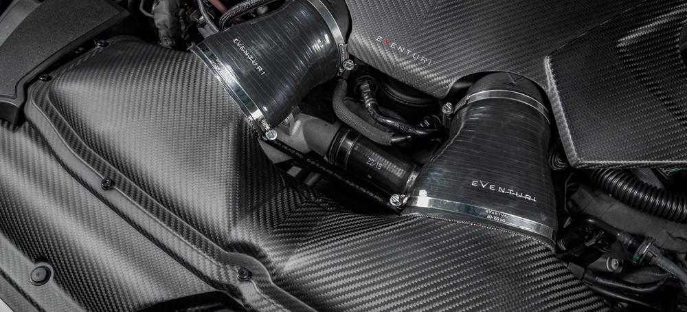 STAGE 2 TESTINGDyno testing on a stage 2 RS6 was carried out by Eurocharged Canada on a car with aftermarket downpipes, intercoolers and their own stage 2 remap. Figures here are shown at the wheel. They ran the car multiple times with both the stock airbox and the Eventuri with the resulting figures shown below after taking the best stock vs the best Eventuri results. Again we can see a dramatic increase in power and since this is at stage 2 levels, the stock airbox is an even bigger restriction. The highlighted point shows the highest gain in the RPM range of 79hp at the wheels.