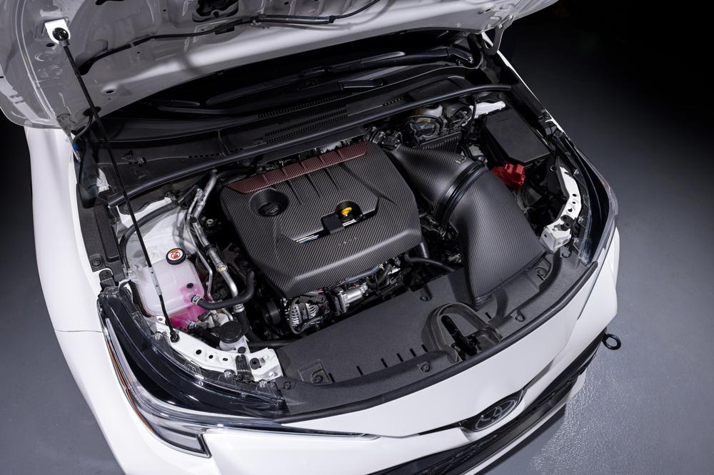 The GR Corolla Eventuri system uses our Patented Carbon fiber Housing which provides an aerodynamically efficient airflow path from the filter to the turbo. Not just another cone filter with a heat shield but a unique design which invokes the Venturi affect and maintains laminar flow conditions to reduce the drag on the turbo.