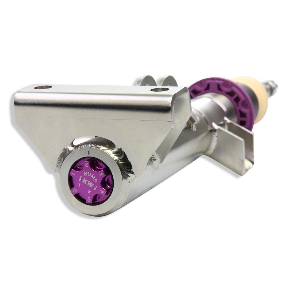If you have already made your first performance modifications to your vehicle our KW V3 coilover will compliment your upgrades. The patented KW-valve technology for separate adjustment of rebound and compression damping allows you to individually setup your suspension.The adjustable KW bottom valve adjusts the low-speed range of the compression level in twelve clicks.