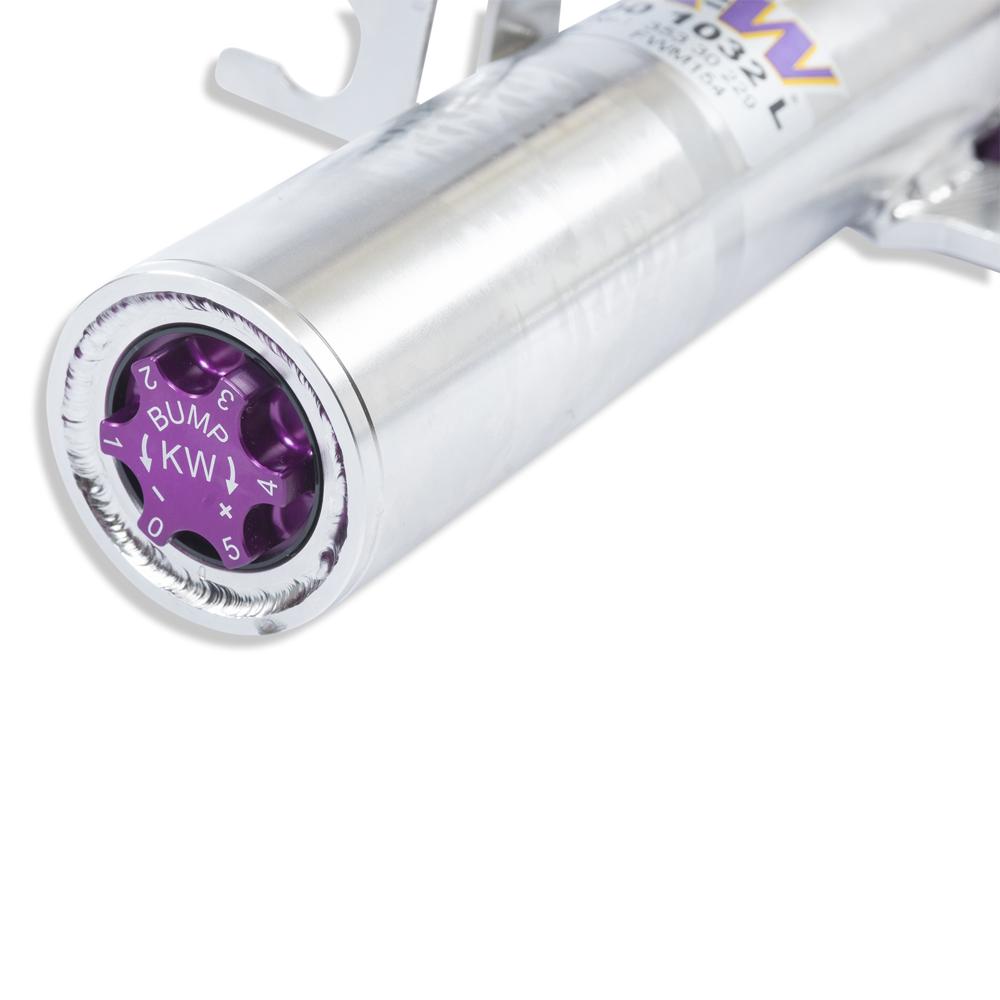 If you have already made your first performance modifications to your vehicle our KW V3 coilover will compliment your upgrades. The patented KW-valve technology for separate adjustment of rebound and compression damping allows you to individually setup your suspension.The adjustable KW bottom valve adjusts the low-speed range of the compression level in twelve clicks.