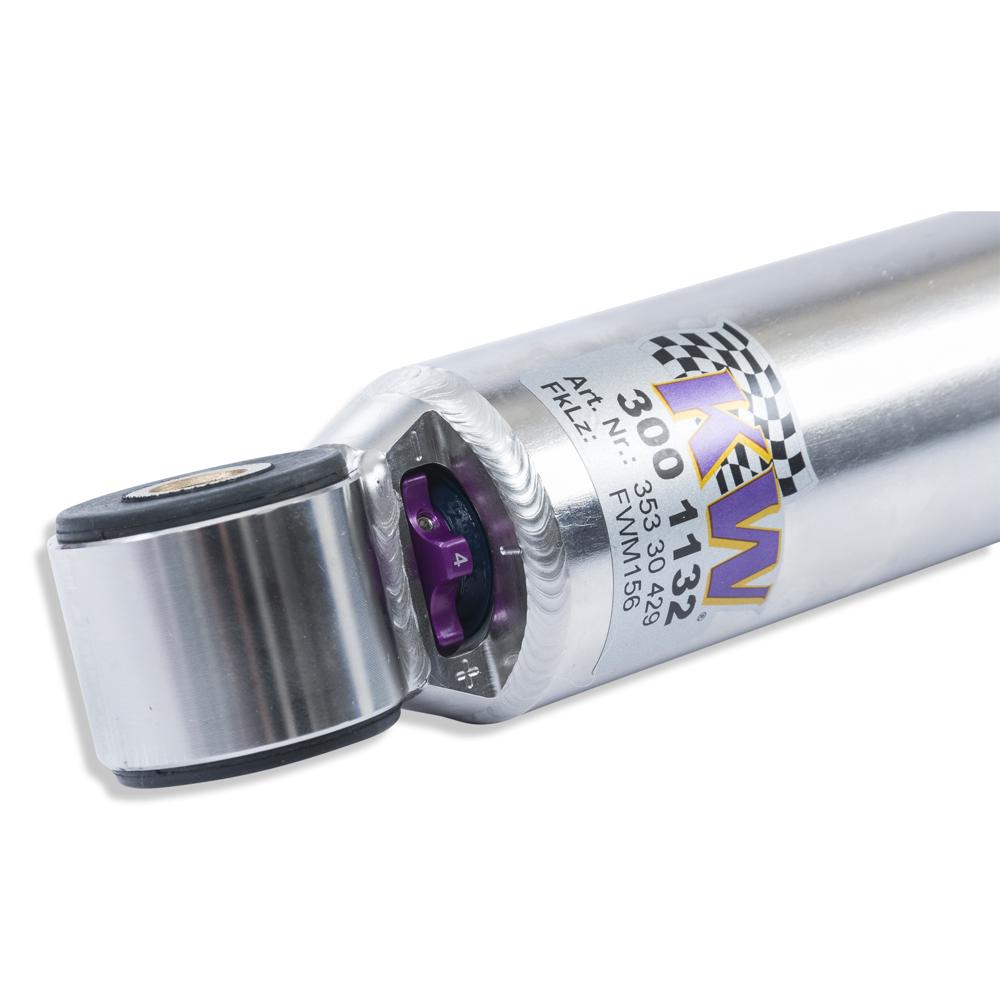 With the individually adjustable rebound setup of the KW V3 you can directly influence the handling and comfort with its precise click adjustment. Depending on the vehicle type, the rebound valves of the KW twin-tube dampers on the upper end of the piston rod will be adjusted via an integrated adjustment wheel or a twist-adjustment wheel which is included in the delivery content.