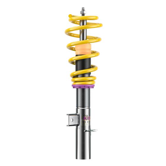 The KW V3 coilover kit is the perfect accessory for performance-oriented drivers and tuning enthusiasts who put a great demand on their suspension. The separately rebound and compression damping adjustable dampers with their "well-thought-through" click adjustment allow a perfect setup. So it is easy to influence the steering behaviour, directional stability, tire grip and handling characteristics when driving on the limit.